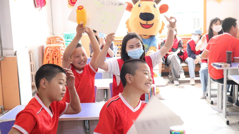 大学生艺术团话剧团教小朋友绕口令、发音方式和肢体协调能力,街舞团为孩子们带来街舞表演并教他们一些基本街舞动作。