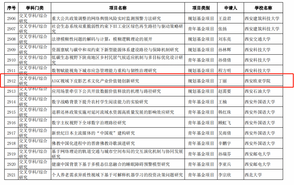 丁丽老师的课题《AIGC视域下皮影艺术文化产业价值链创新研究》旨在研究人工智能技术在皮影艺术文化产业中的应用,探索皮影艺术文化产业价值链的创新模式和实现路径,为推动文化产业的发展提供新的理论和实践指导。葛哲敏老师的课题《基于时空大数据的西安都市圈乡村文旅空间格局总体设计研究》旨在利用时空大数据技术,研究西安都市圈乡村文化旅游的空间格局和发展趋势,提出乡村文旅空间的总体设计方案和实施策略,为推动乡村振兴和城乡一体化发展提供理论支撑和实践参考。