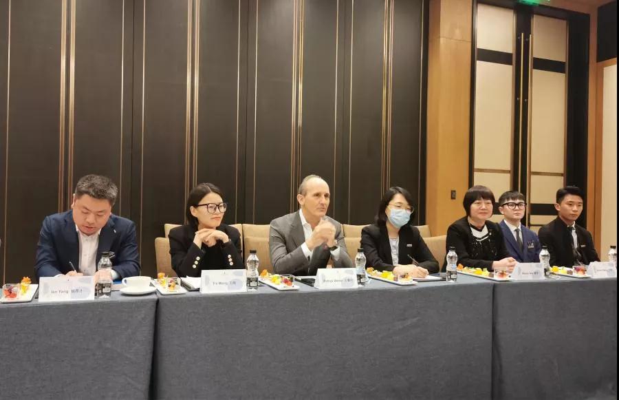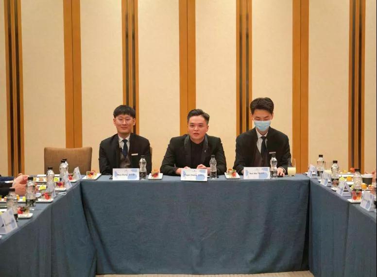 西安丽思卡尔顿酒店总经理文睿珂先生及酒店管理团队接待校领导及参访人员,并发表主题致辞。总经理非常欢迎校方领导前来参观指导,特别感谢学校教学团队为酒店培养优秀实习生,希望校企双方未来有更好合作关系,共同为酒店行业培养人才。