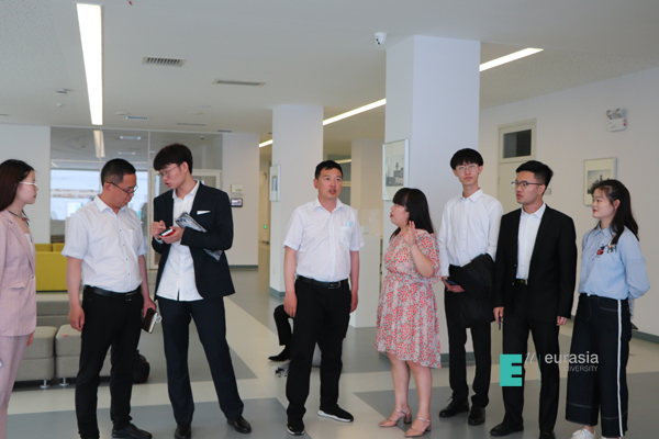 6月28日上午,西藏阿里陕西实验学校邓付宽校长、张波主任到访鸭脖。人居环境学院徐缤荣老师与项目组15名大学生成员对远道而来的邓校长、张主任表示热烈欢迎,师生边走边聊,参观了欧亚学院教学区和行政区。邓付宽校长对欧亚学院绿色、人文、国际化的校园环境表示赞叹。