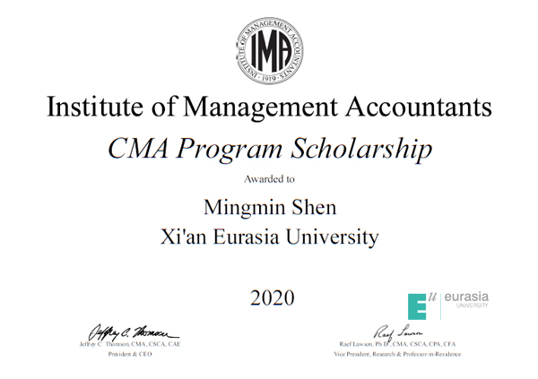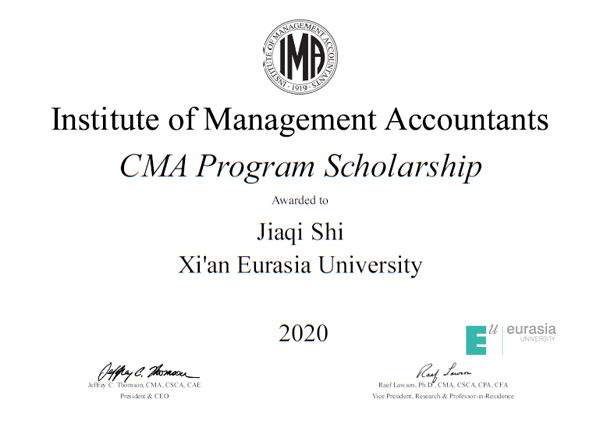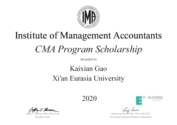 日前,由美国管理会计师协会(IMA)设立的CMA奖学金2020年度获奖名单揭晓,鸭脖会计学院2017级财务管理专业高开先、石佳祺、沈铭敏荣获本年度该项目奖学金,将获得免费 CMA 学员注册和 CMA 考试的机会(等值约¥6000元)。这标志鸭脖的管理会计国际化人才培养工作和教学质量获得了IMA的高度认可。