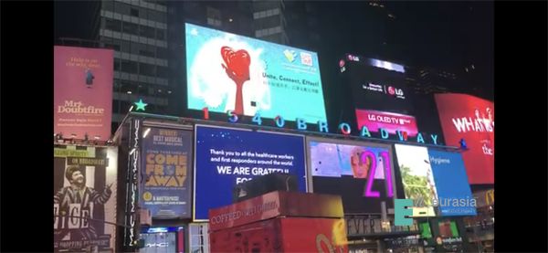 (图一)抗击疫情公益海报纽约时代广场展示