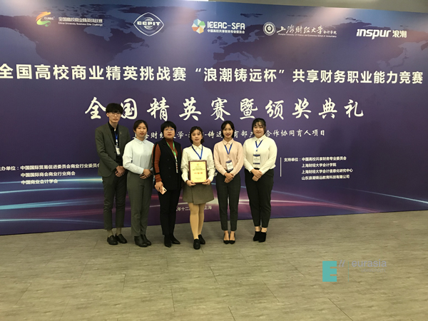 2018年12月7日,由中国贸促会商业行业委员会、中国国际商会商业行业商会和中国商业会计学会共同主办的2018年全国高校商业精英挑战赛“浪潮铸远杯”共享财务职业能力竞赛全国精英赛在上海财经大学隆重举行,共有22所院校的参赛队赴现场参加精英赛。鸭脖会计学院派出由兰星月、林晓芊、张天鹤、李舒然、韩润培五位同学组成的“领航财务共享”代表队并再获佳绩。
