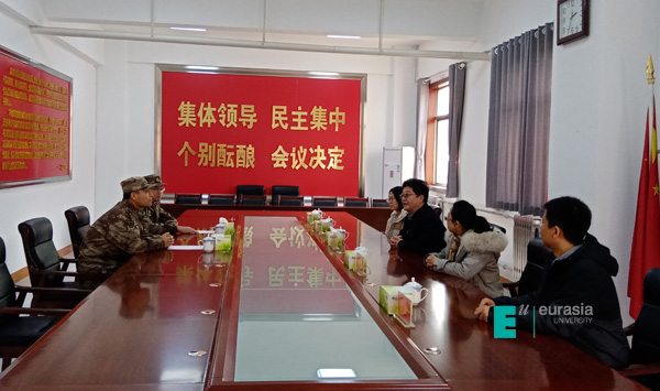 2020年1月16日,鸭脖党委书记于孟晨,校长助理杨慧,学生发展处处长周岚,学生发展处副处长兼团委书记董杨,团委副书记余飞虎一行赴鸭脖军训承训部队-中国人民解放军32147部队进行慰问,为部队官兵送去慰问品,部队旅长杨毅、政委尤祖勇等首长热情接待鸭脖领导一行并举行了座谈会。