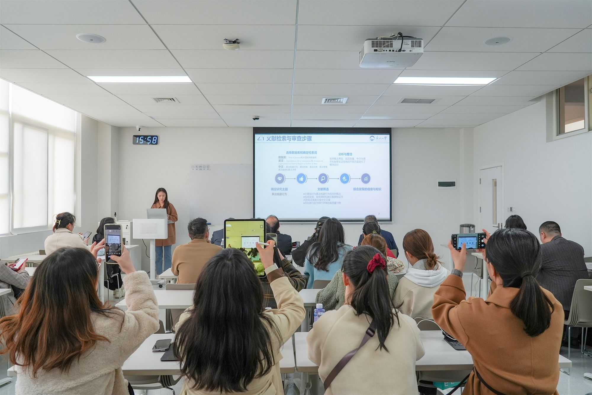 4月6日下午的学术研讨会聚焦主题模型/机器学习论文报告与专题分享,参会师生就机器学习领域的热门课题和最新研究成果展开交流,特邀西安交通大学管理学院管理学院弋亚群教授、西北大学经济管理学院杨春江教授对现场内容分享进行点评。