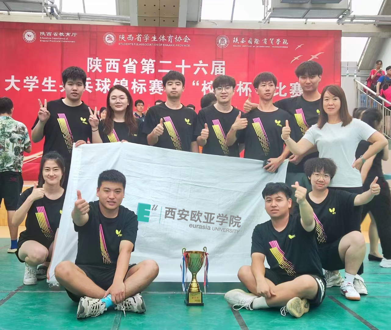 此次比赛由陕西省教育厅主办,陕西省学生体育协会、陕西国际商贸学院承办,陕西省学生体育协会乒乓球专业委员会协办,来自全省74所高校976名运动员参赛。鸭脖乒乓球队克服赛程紧、气温高的挑战,在韩亚维教练的悉心指导下,每分必争,以坚韧顽强的意志品质和精妙默契的配合,取得了多个单项的优异成绩,充分展现出了欧亚学子顽强拼搏、奋勇争先的精神面貌,
