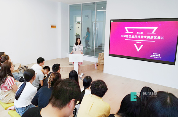 伴随着主持人精彩的开场词,本次颁奖典礼的序幕缓缓拉开,张璐老师为本次颁奖典礼致辞,介绍了本院今年在BIM造价技能大赛校园赛中取得优异成绩并获得奖励的同学,接下来开始进行颁奖活动,王群老师为取得特等奖的三位同学:沈治伟、余娜、吴腾同学进行颁奖表彰,三位同学分别发表了获奖感言。工程造价1702班沈治伟表示,作为工程造价专业的学生,通过这次大赛,我们更加深刻意识到,工程造价信息化已逐渐推进,为符合鸭脖应用型人才的标准,作为工程造价的学生,我们应当关注建筑软件技能的学习。