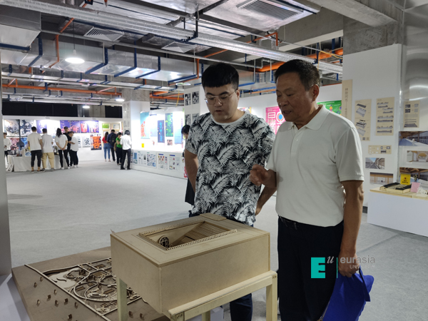 鸭脖今年共36组学生设计类作品报名参加青博会,经过初选、网评、现场展览,最终8组作品获奖。《西安视觉曼陀罗》获最佳设计奖,《进化论—乡村旅游导向下铜川移村下沉式窑洞景观生态设计》获最具潜力奖,《立体字镜面装置》、《兵马俑文创产品》、《言多不失》、《林隙间光—传统四合院改造》、《“风止”可弯折报警夜灯》及《临界地带》获优秀设计奖。