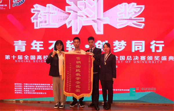 在总决赛进行时,我院学生团队在指导老师的带领下,准备充分,信心满满,并在出场顺序第一的前提下,在答辩环节中精彩纷呈的讲解,不仅表现出自身的专业素养和创新思维,更体现出了我院教师过硬的教学水平以及欧亚学子的蓬勃风采,获得了大赛评委老师以及大赛组委会的一致认同和好评。