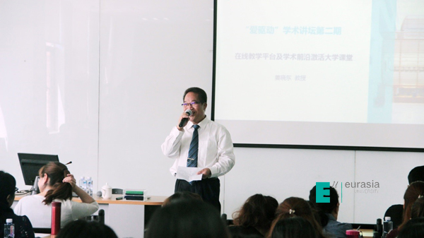 此次讲坛特邀学界知名专家、华东师范大学生命科学学院生物学系系主任姜晓东教授主讲。姜教授毕业于纽约州立大学石溪分校,主持完成包括上海市精品课程建设在内的多项教学改革与建设项目,荣获多个教学奖项。姜教授为欧亚教师带来了关于“在线教学平台及学术论文激活大学课堂”的精彩分享。