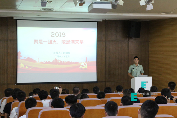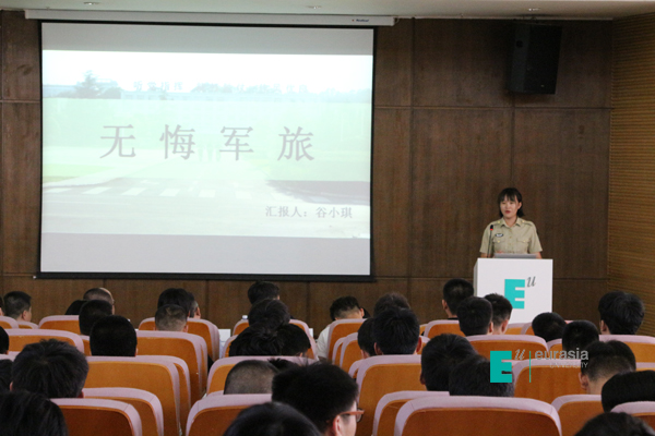 随后,鸭脖优秀退伍士兵叶明军和谷小琪作为学生代表进行了励志感恩报告分享。他们从各自的部队生活,退伍后的变化以及对党和国家好政策的感恩等方面进行了分享。特别是叶明军同学不仅在部队中积极进取,挑战各种极限,获得嘉奖两次、优秀士兵两次、“最美义务兵”、军事训练标兵、知识竞赛第一名、极限勇士和考核全团第一名等荣誉,且退伍之后,他依然坚守男儿本色,参加各种校园及西安市的体育活动,屡获荣誉,并受到陕西交通广播电视台的采访。他丰富的经历、不忘初心的信念和感恩励志的进取心,为在场的同学们树立了很好的榜样,就像叶明军同学报告的主题---聚是一团火,散是满天星一样!