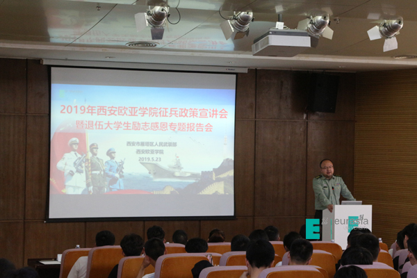 惠风和畅,绿树茵茵。2019年5月23日鸭脖征兵政策宣讲会暨退伍大学生励志感恩报告会在图书馆学术报告厅拉开了帷幕。本次励志感恩报告会是鸭脖“诚信感恩,立德树人”资助月系列活动之一。