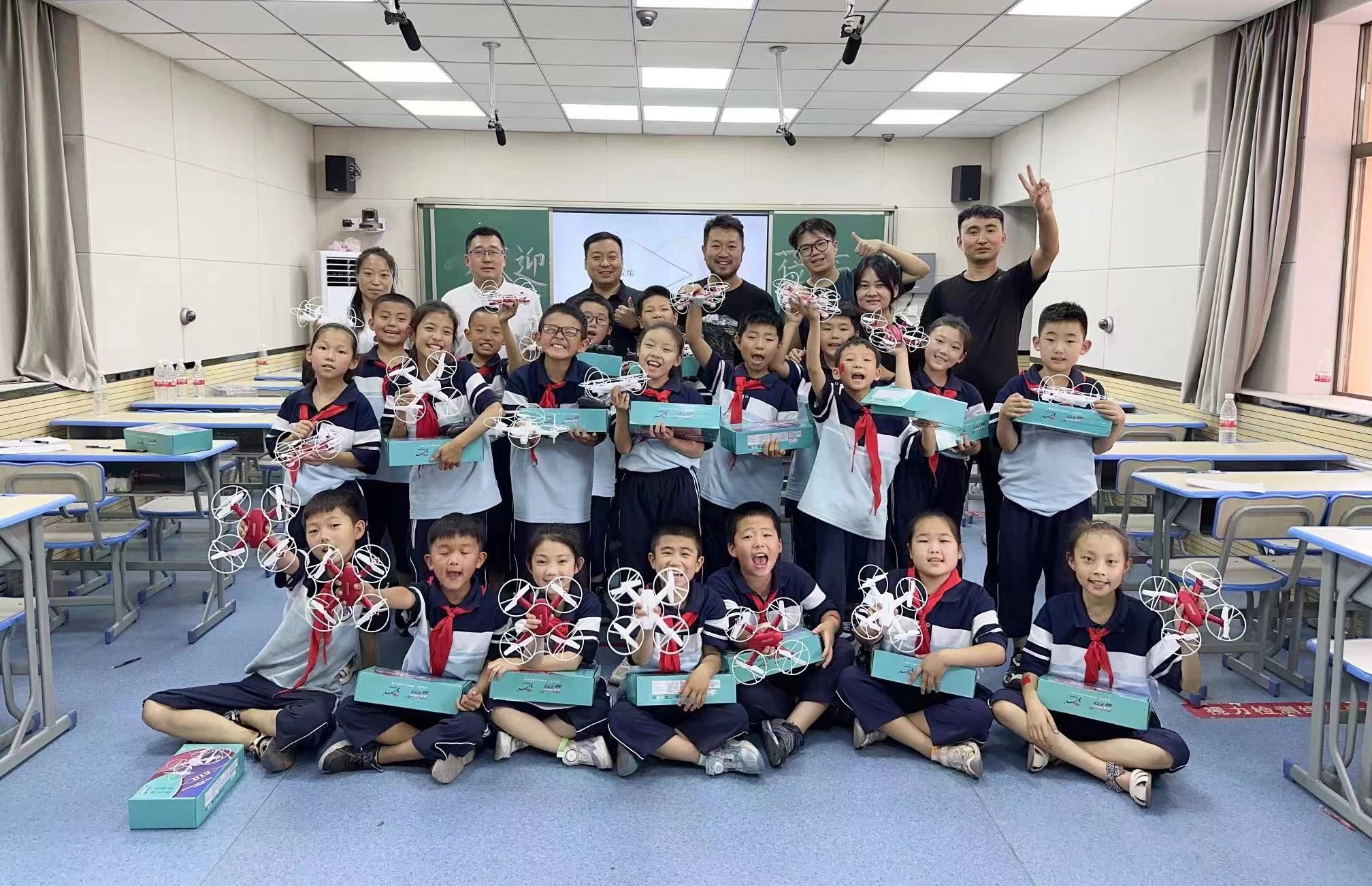 培训围绕无人机结构、飞行器原理及其在人工智能领域的拓展应用,以学生年龄与知识结构储备为出发点,兼顾知识性、趣味性、实践可操作性,通过交互体验、动手实操和
