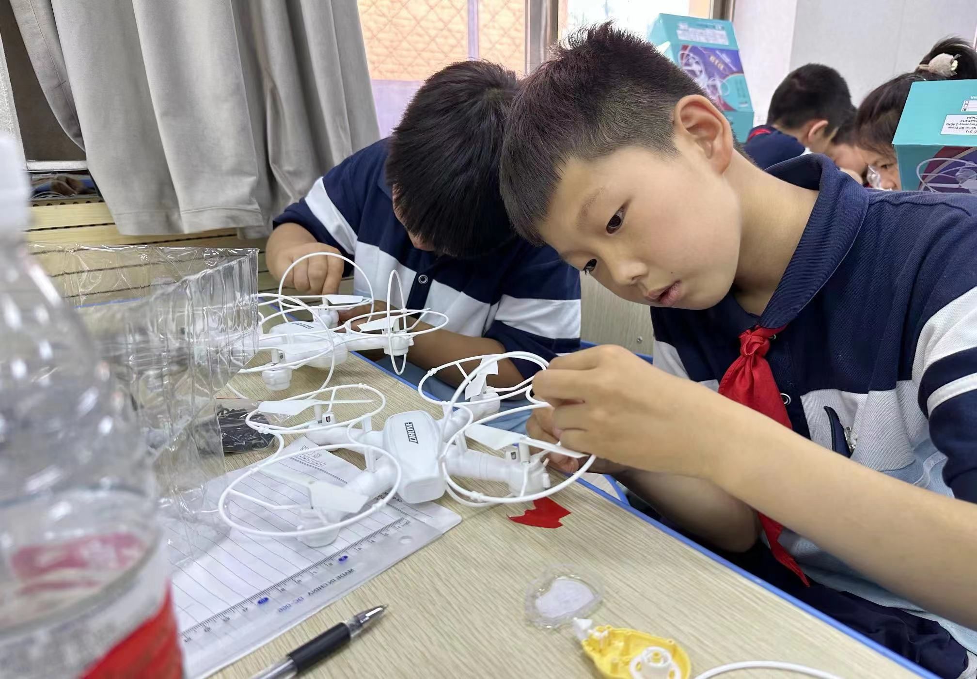 同学们在培训老师指导下了解无人机结构、无人机飞行原理、拍摄技巧,并体验无人机实操试飞,让同学们近距离感受科技的魅力和乐趣。此次培训,拓宽了乡村孩子们的视野,激发了他们的学习兴趣和创新动力,也锻炼了他们的学科融合能力、思维能力和动手能力。