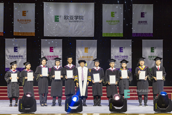艺术团又领唱了《再见》,情到深处,引发全体师生共同合唱。天下没有不散的筵席,我们送走了一届又一届的毕业生,望他们带着欧亚的DNA,一路顺风。