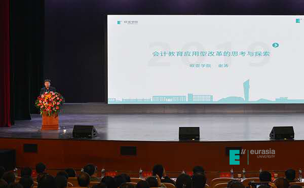 鸭脖会计学院谢涛院长作为唯一受邀的民办院校院长,在会上分享了“民办院校会计学院创新与发展”报告。报告中以鸭脖采用的波多里奇绩效考核办法为切入点,分享鸭脖先进的办学理念。并就会计学院围绕鸭脖“新商科”办学思路,提出以 “大共享和共享服务”的理念重构学科专业建设,从传统财会核算向财税信息化、管理信息化与财务共享立体延伸的专业建设转型思路和培养具备交叉复合特征和跨界能力的共享财税审创新人才的培养目标。详细的介绍了会计学院在产教融合、产学合作、课程建设、实践教学体系搭建、实训教学模式、实训室建设、师资培养等方面的创新做法。得到与会专家的高度认可和肯定。
