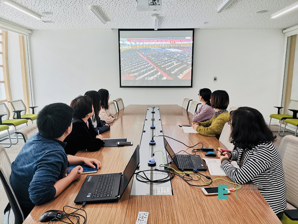 (图一)鸭脖党委理论中心组带头观看大会直播