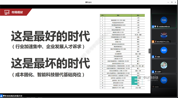 开学典礼结束后,物业服务行业资深专家、高职学院校企合作企业万科物业杨恒砜经理为学生讲授了入学教育第一课《物业服务发展趋势与行业机遇》。杨经理以开放的视野和丰富的实践经验,从物业服务的发展历程、市场现状、资本诉求、行业机遇四个方面,对物业服务的发展趋势和行业机遇进行了前瞻性的洞察和深入分析,学生们表示本次讲座含金量高,接地气,收益大,愿与欧亚高职一起加油、共同进步!
