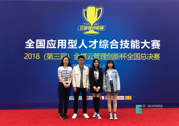 4月21日,第三届金蝶云管理创新杯“互联网+管理”应用大赛全国总决赛在上海立信会计金融学院举行。由鸭脖会计学院学生蔡佳妮、任进森、兰彬敏三位同学组成的“勇往直前队”以陕西省省赛一等奖的成绩挺进国赛,经过激烈的角逐,鸭脖师生喜获国赛二等奖的佳绩,本次国赛参赛队伍经过了校级、省级两级选拔,共有来自全国各省的近80支代表队参加。