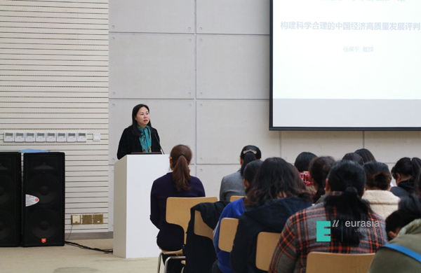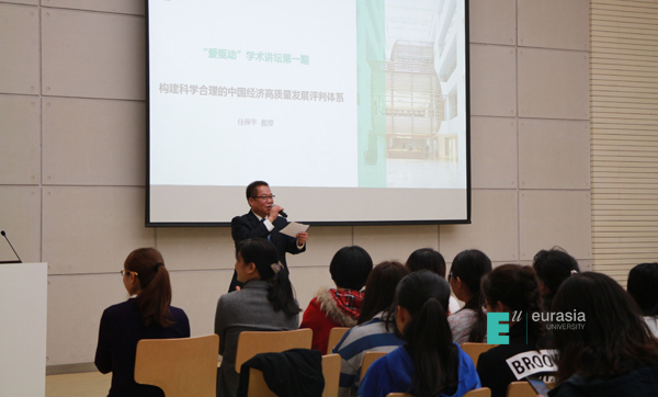 此次学术讲坛有幸邀请到教育部长江学者特聘教授、中组部哲学社会科学领军人才、中宣部“四个一批”人才工程领军人才任保平教授。任教授长期以来,在资源环境经济学、发展经济学、数量经济学和区域经济学领域,都有着令人瞩目的贡献。近年来,任教授围绕中国经济转型和中国经济高质量发展开展了系列研究。此次讲坛,任教授为欧亚师生带来的关于“中国经济高质量发展评判体系”的分享,就是他多年来的研究成果。