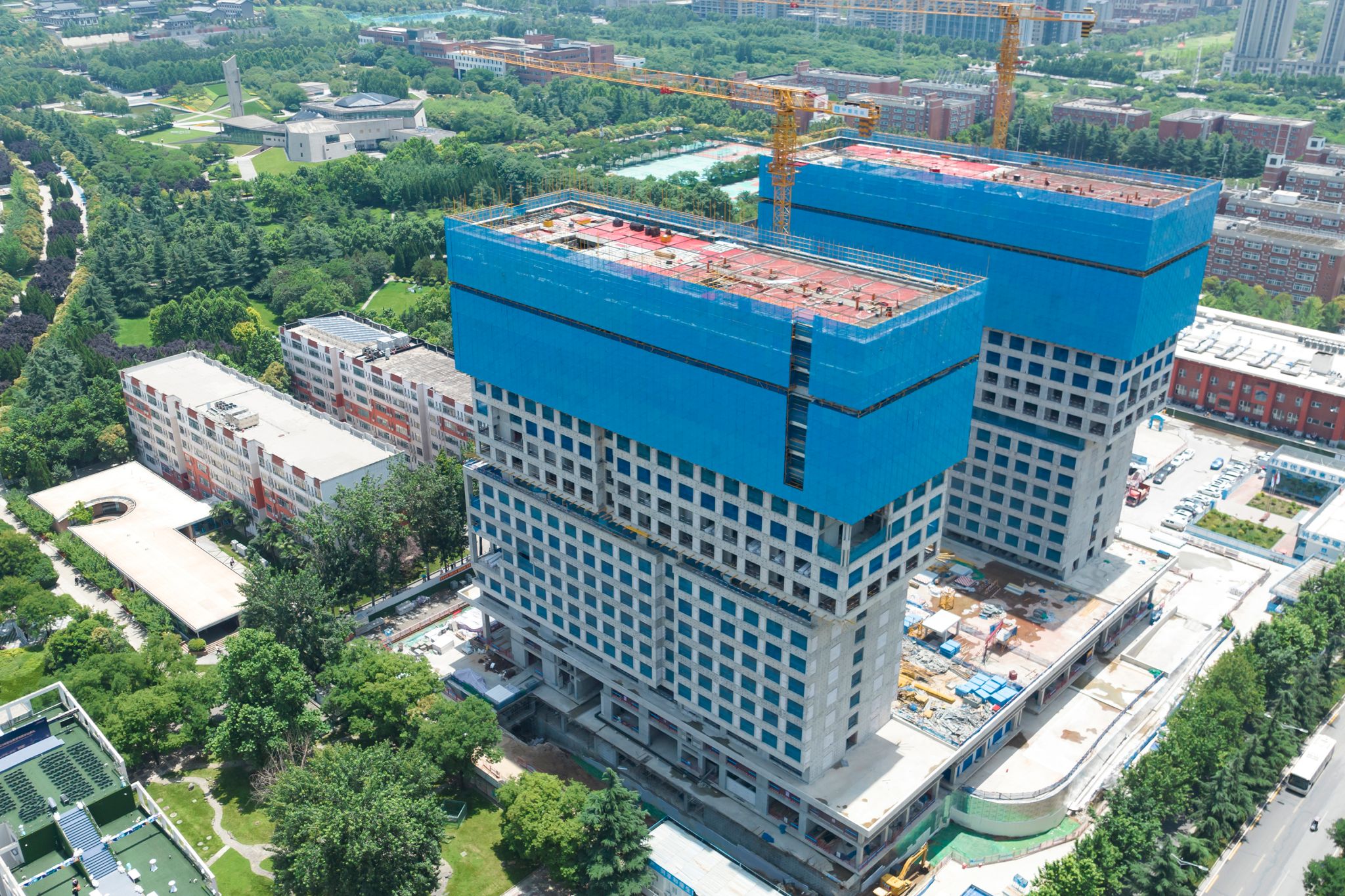 (图四)西区学生公寓(上图为效果图,下图为即将封顶现场图)
