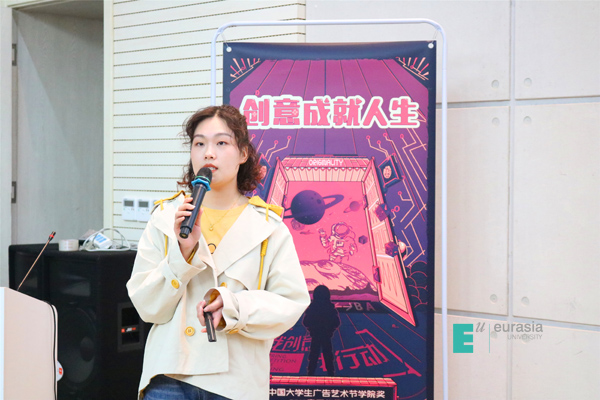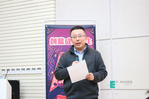 主持人文化传媒学院徐海冰老师介绍完嘉宾后,由鸭脖文化传媒学院院长助理高昱老师致欢迎辞,他表示:“这是第十七届大广节,也是欧亚学院连选的第七年。在这里,我们聆听大咖的分享,深入了解更多品牌并提高自己的能力,不断推进‘产、学、研’一体化,培养创新人才。”