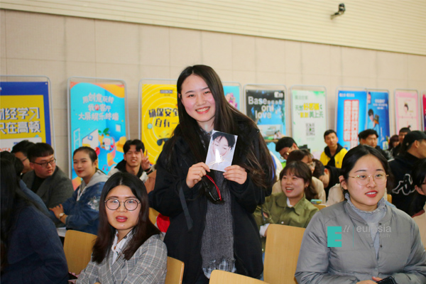 RIO强爽品牌负责人武玥女士不仅对已有产品进行了介绍,还与大家分享了RIO正在研制的其他口味。回答问题的同学们不仅可以得到新口味的RIO鸡尾酒,更有幸运者获得了周冬雨的亲笔签名照。同学们都积极踊跃地举手回答问题,现场气氛瞬间被推向高潮。