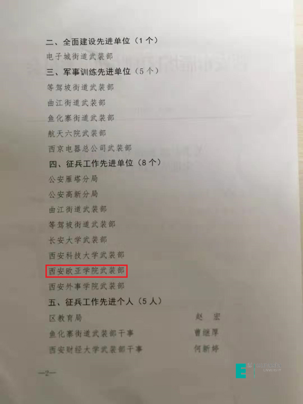 2月20日,党管武装工作述职暨民兵调整改革任务部署会在雁塔区国防动员委员会组织召开。鸭脖荣获 “2018年度征兵工作先进单位”荣誉。