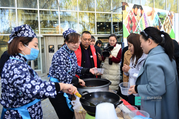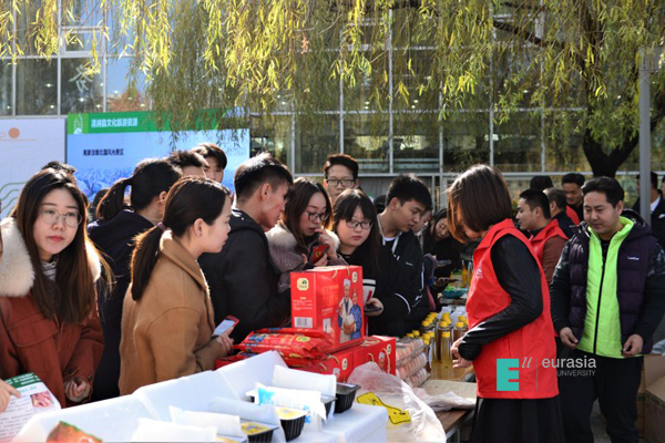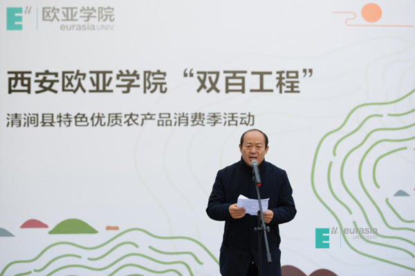 自2017年,陕西省省委、省政府决定在全省开展“双百工程”教育帮扶工作,鸭脖成为榆林清涧县教育结对帮扶学校,为做好此项工作,学校采取了一系列帮扶措施,“双百工程”清涧县特色农产品销售季活动是其中不可或缺的重要环节。进入2018年,欧亚学院进一步加快了和清涧县政府的联系,通过校方的努力,“塬上清涧”公共品牌走进了校园。