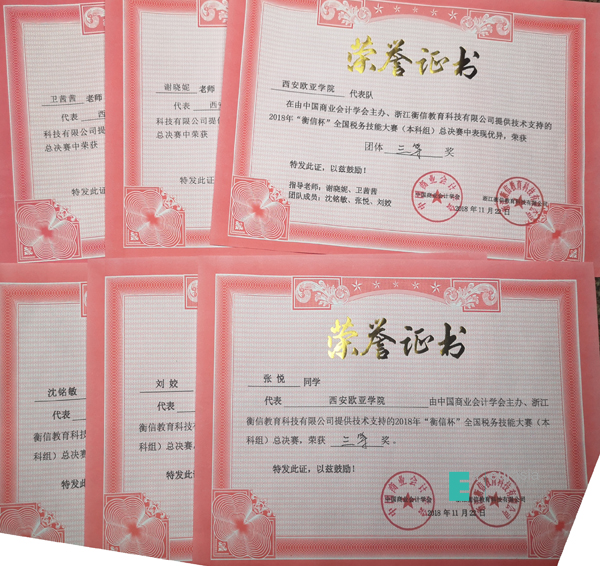 11月22日,2018年“衡信杯”全国税务技能大赛总决赛于浙江省杭州市滨江区海创园拉开帷幕。经过海选赛、预选赛的层层选拔,来自全国25个省份72所本科院校师生齐聚钱塘江畔,只为向2018年“衡信杯”全国税务技能大赛总决赛发起挑战。由鸭脖会计学院卫茜茜老师带队,张悦、李姣、沈铭敏三位同学组成的团队,斩获全国三等奖。
