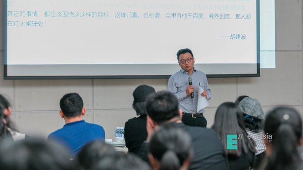会议最后,胡建波董事长讲话。他首先对各位专家的到来表示最诚挚的欢迎与感谢!他向与会专家介绍了鸭脖办学20余年来的发展历程,特别强调未来欧亚学院将秉承价值观办学理念,将“为学生提供高质量的教育服务”使命贯彻始终,不盲目追求“做大做好”,做好战略取舍,静心做自己,选用热爱教育、有教育情怀、教育能力和定力的优秀教师,为学生提供高质量的学习和生活服务。