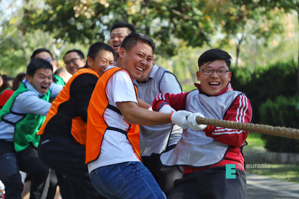 分组比赛结束后,老师按照两个工作单位分开,人居环境学院老师和馨迪公司员工进行拔河友谊赛。呐喊声、欢呼声,久久地飘荡在校园。所有人像快乐的孩子,在快乐的游戏中释放压力、舒展身心。