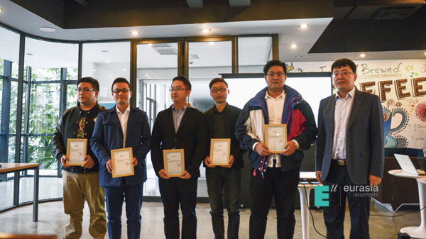 10余万名校友是母校发展的强有力后盾。如今,在欧亚各个二级学院,有一批行业经验丰富、乐于分享职场经历的优秀校友,为学院带回了最新鲜的行业知识,丰富了课堂教学内容,提升了实践教学效能。金融学院特别为蔡星辉、黄新兴、刘苏铭、楼浙伟、张争光、桑坤等6位校友颁发了“校友讲师”聘任证书,他们将为学弟学妹做出榜样,指引方向。