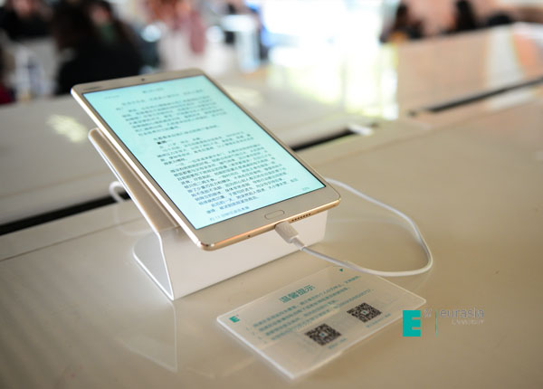 电子资源阅读体验区设立的初衷是希望阅读无处不在,也体现着欧亚学院对学生学业的支持,同时也提醒大家爱护设备,不要刻意损坏。另外值得注意的是设备使用时间为早上八点至晚上七点,包括周末。节假日期间,出于安全因素考虑可能会暂时撤销。