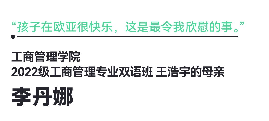 浩宇在欧亚的学习生活很快乐,是李女士最为欣慰的事。她希望孩子能够向欧亚的各位老师学习,不断丰富人生阅历、走向更广阔的世界。
