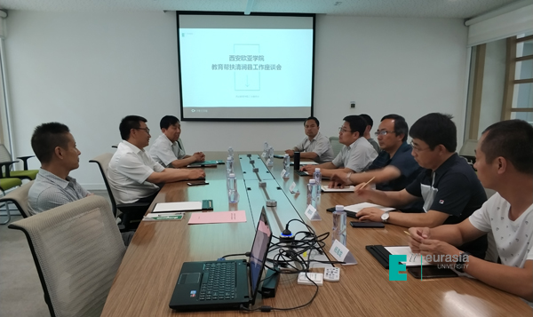 2018年6月24日下午,鸭脖召开教育帮扶清涧县工作座谈会,学校邀请清涧县政府主管教育扶贫工作的副县长韩秀晋、清涧县教育局局长白炜、商贸局局长辛鹏宏等一行7人前来鸭脖座谈交流教育扶贫工作,学校董事长胡建波、党委书记许尚年、工会副主席晏建忠参加了座谈会。