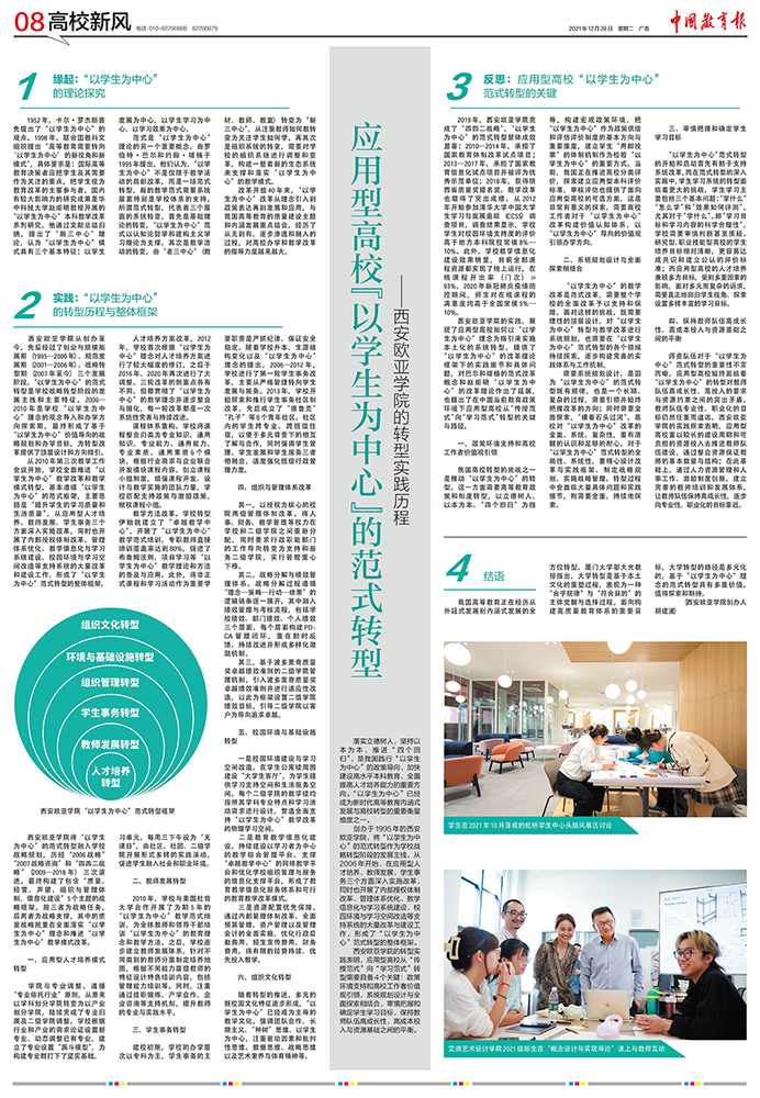 2021年12月28日,《中国教育报》第8版刊发了YABO鸭脖创办人、董事长胡建波教授的文章《应用型高校“以学生为中心”的范式转型——YABO鸭脖的转型实践历程》,文章介绍了YABO鸭脖“以学生为中心”的范式转型历程及整体框架,并对应用型高校从“传授范式”向“学习范式”转型的关键与路径进行了反思和探讨。现全文转载如下: