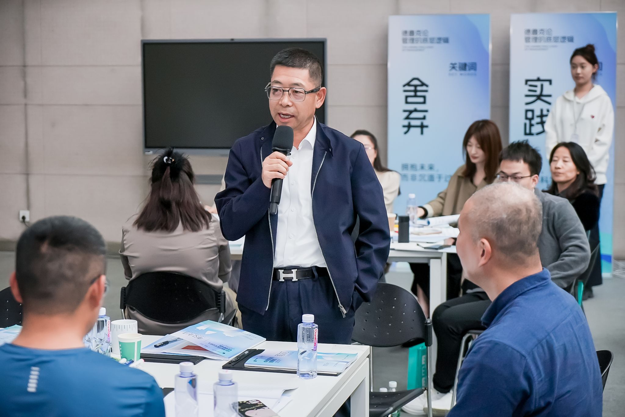 通过逻辑思维、批判性思维、设计思维等三种不同的思维模式,欧林三角与广义的创新观,德鲁克的三重视野等内容分享,胡建波董事长从人的需求出发,提出如何区分观念与事实,做出有效决策,激发了在场企业家和师生们更多的思考。
