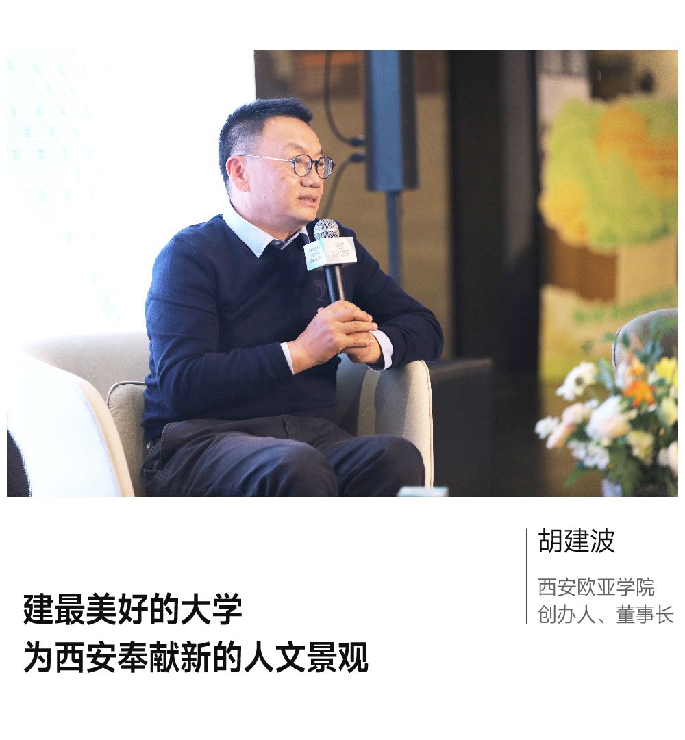 胡建波:当我创立欧亚的时候,我也在想我真正能为社会做出怎样的贡献,所以一方面教育教学改革,以学生为中心,为学生提供高质量的教育服务,另一方面开放办学,为周边地区、为城市发展不断做贡献。所以当我开始逐步改造校园的时候,就顺理成章,有了要给西安奉献新的人文景观、建最美好的校园的念头。后来这个理念引领着我们,先后请来宁波设计院、清华大学设计团队来做教学楼、欧亚图书馆,现在我们校园还有法国设计师逐步完成的一系列空间改造项目,澳大利亚设计团队操刀的西区学生中心已经封顶。所以经过二十多年,到今天可以说很欣慰能够给这个城市奉献了美好的人文景观,未来欧亚还会给西安奉献更多。