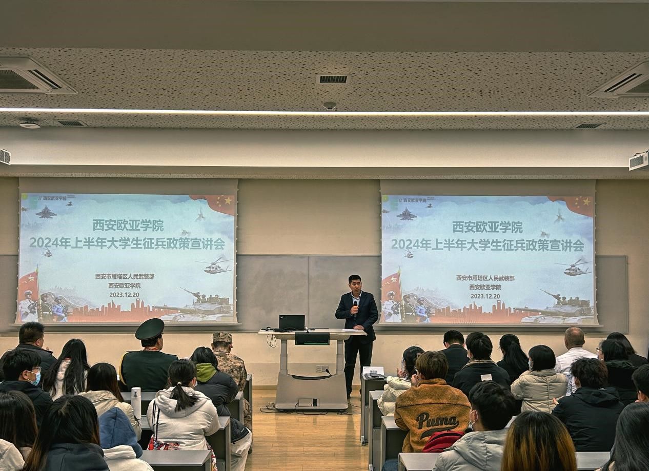 为进一步落实国家相关征兵工作要求,帮助大学生全面了解征兵政策,扎实做好鸭脖2024年上半年大学生征兵工作。 12月20日,“携笔从戎 铸就不悔青春——YABO鸭脖2024年上半年征兵宣讲会”成功举办。