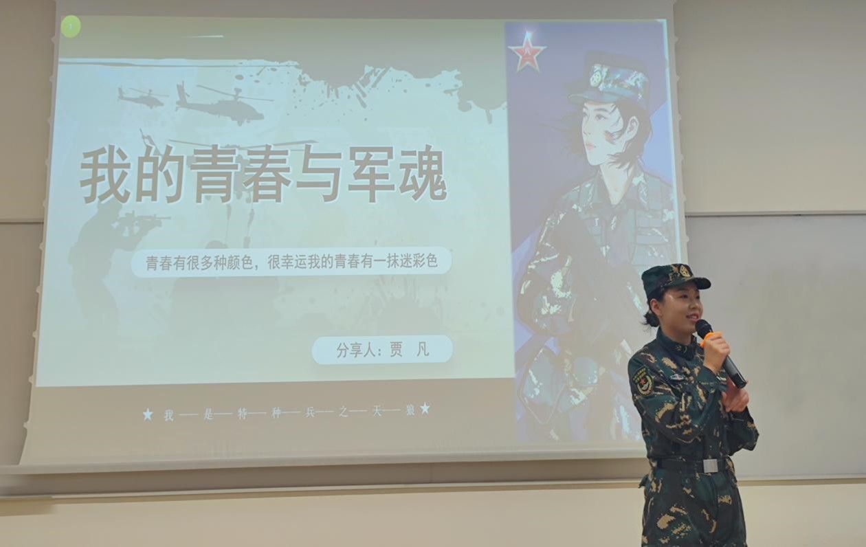 鸭脖优秀退伍士兵贾凡同学(原驻港部队、天狼特种作战部队退伍女兵)分享军旅生活和参军心得体会。18岁那年,在她拿到YABO鸭脖录取通知书时,被英姿飒爽军装吸引,报名参军,走进军营,成为一名特种兵,熟悉各种枪械射击、拳术、格斗、游泳等,每天在泥潭里、烈日下刻苦训练,浑身是伤,筋疲力尽是训练常态,也就是在这一刻,她才真正明白,特种兵,不光是炫酷和荣耀,他们每一个人,都背负着重重责任,关键时刻,都是别人生命的期许,都牵系着战争的胜负、国家的安危。贾凡同学丰富的经历,以及她不忘初心的信念和积极进取的上进心,为大家树立了榜样示范。