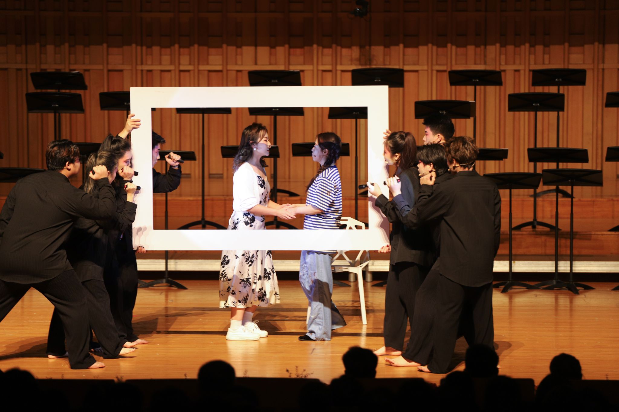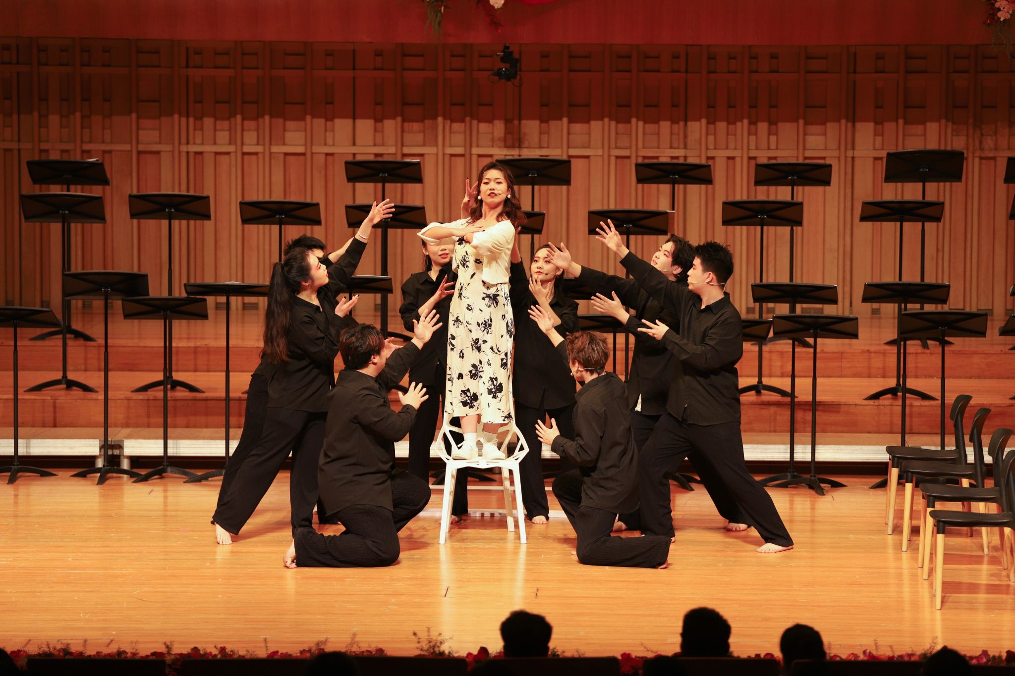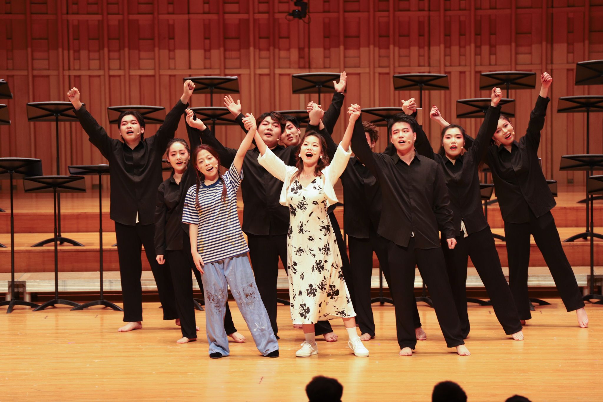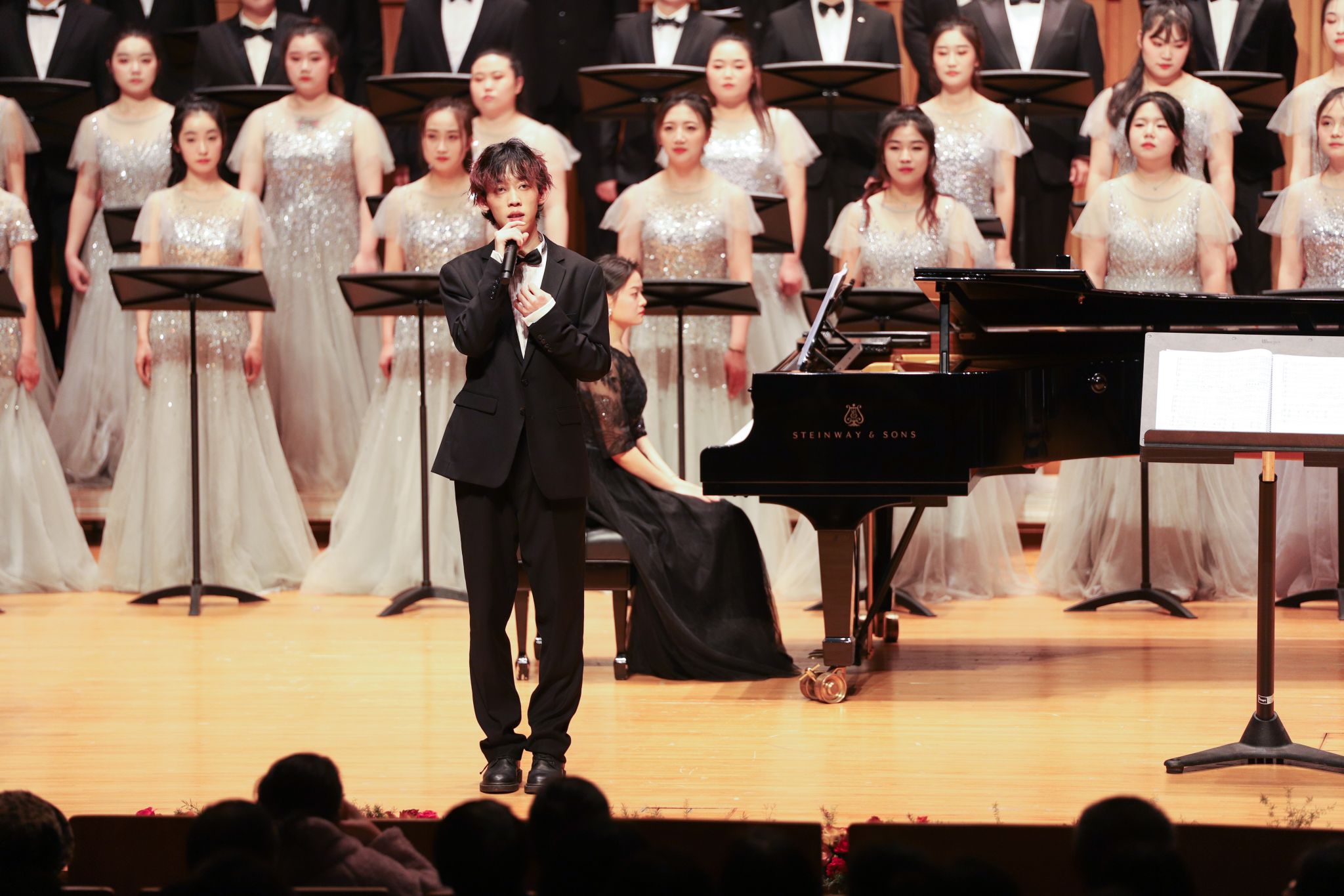 今年音乐会的9个节目既包含了风格多样、中外交融的经典合唱,还有刚刚在陕西省第七届大学生艺术展演活动中获奖的原创音乐剧,丰富的节目类型为现场观众带来一场赏心悦目的视听盛宴。