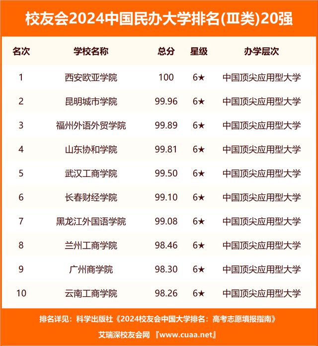 校友会2024中国民办大学排名Ⅲ类(部分)