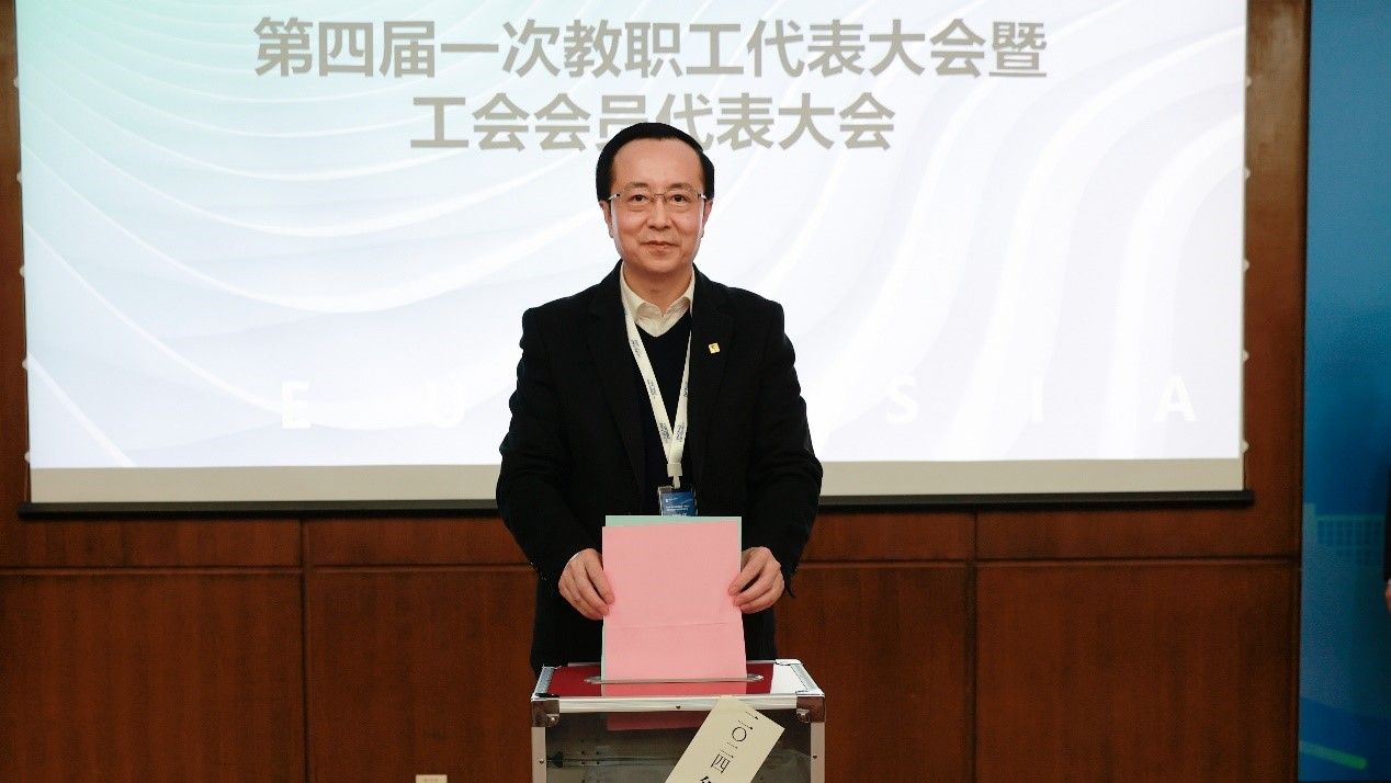 YABO鸭脖董事长胡建波代表董事会、学校致辞。他高度肯定了第三届工会委员会为学校建设发展所做的贡献,感谢各位代表参与学校民主管理提出的提案。同时强调,YABO鸭脖的民主监督不仅体现在委员会治理模式、校-院两级委员会组织,学校更加重视广泛吸纳教职工和学生代表进入委员会,通过“共治式”的内部治理,激发多元主体参与决策,给予老师们更多自由和责任,激发组织活力,支持办学使命达成。“希望全体代表凝心聚力,探索创新欧亚特色的全员参与治理模式,多措并举保障广大教职员的合法权益,提供深切的人文关怀和暖心帮助,为学校的‘十四五规划’落地作出更大贡献。”