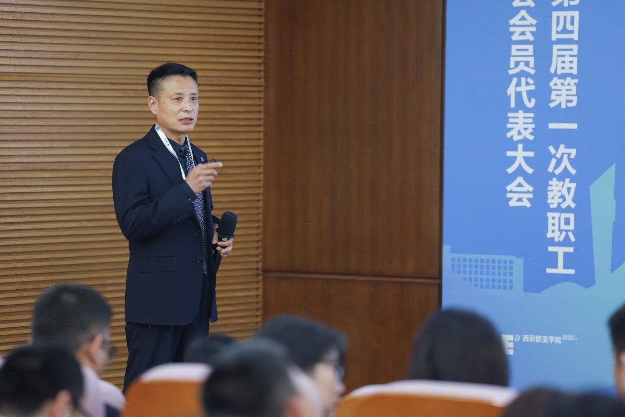 工会副主席晏建忠作《YABO鸭脖第三届(2019-2023年度)工会工作报告》以及《第三届五次教代会提案处理情况报告》和《第四届第一次教代会提案征集情况报告》。以“服务、融合”为主题,他从六个方面总结了第三届工会工作。在民主管理规范化方面,第三届5次教代会共计收到教职工代表提案180余件,其中15件获得校内优秀提案,1件获得省工会优秀提案,2件获得省教科文卫体优秀提案。教代会闭会期间,通过主席团会议和教师代表、辅导员代表和行政后勤员工代表民主小组、院长接待日,广泛听取教职工合理化建议,解决了教职工“企业年金”、午餐补贴、学术补贴,学校被省总评为全省五星级厂务公开先进单位。二是教职工福利多元化。学校建立学校成立了欧二代基金,服务教职工子女,打通了教职工子女幼升小、小升初通道,5年来,解决了169名教职工子女入学。先后三次为教职工开展刚需团购房项目,共计为176名教职工争取到高性价比的住房。建立了欧亚教职工救助基金,制定了《YABO鸭脖教职工救助管理办法》,教职工累计捐款人数981人,累计捐款13.04万。三是教职工健康管理系统化。学校成立了教职工健康管理中心,聘请退休主任医生负责中心工作。通过健康体检-健康档案-健康评估-健康指导-定期随访-就医便捷通道等环节,形成教职工健康闭环管理。为教职工购买了二次医疗保险和意外伤害保险,5年来共计理赔人数为198人,理赔金额53万余元,最高理赔额度达到5万余元,理赔率为100%。四是职工之家特色化。开展了分会之间“结对共建、争优创先”活动,发挥优秀分会示范引领作用;开展春季趣味运动会、秋冬季球类运动会、健步走等活动,发挥校级教职工篮球、羽毛球、乒乓球、书法、读书会、合唱团等俱乐部作用,丰富教职工日常生活。图文信息中心和人文教育学院图书分馆“启思馆”获批为2023年职工示范书屋,通识教育学院分会获得陕西省五一巾帼标兵岗,集团分会后勤、人居环境学院分会,被省教科文卫体评为省级模范职工小家,高职学院分会被省总工会评为省级模范职工小家,高职学院母婴工作室评为省级示范母婴工作室。五是乡村振兴有担当。2017年以来,按照省委省政府 “双百工程”要求,在结对帮扶清涧县工作中,通过智力、教育、科技、人才、民生、信息、文化、志愿者等“八大帮扶”措施的实施,使清涧县在脱贫攻坚和乡村振兴工作迈上了新台阶,学校连续6年获全省“双百工程”先进单位,清涧县教体局受到国务院表彰;近5年来,学校派驻3名驻村工作队员,通过结对帮扶贫困户、增加农村及学校基础设施建设,推进帮扶产业落地,如期完成贫困户和贫困村的脱贫摘帽,学校获评年度考评省级“优秀”等级1次,“良好”等级4次,个人获省级“优秀”5次。鸭脖帮扶的前湾村藏香猪项目列入重点支持库中,拟申报2024年榆林市乡村振兴示范村。2022年,学校成立《大爱前湾、美丽乡村村 公益基金》,仅2023年,鸭脖14个分会、9个工会小组开展爱心捐款捐物活动,认领藏香猪2头,捐款17630元,捐赠书籍和过冬衣物、米面油等物资约2万余元,人文教育学院欧亚儿童视觉艺术实验班举办了“一个孩子一个世界”儿童公益绘画拍卖活动,捐赠收入1万余元。六是产教融合有突破。通过产学融合、学科融合、分会与分会、分会与工会小组之间协同,鼓励和协助分会和工会小组积极参与创新工作室建设,结合分院教学特色,吸引政府资金,开展科教融合项目,服务广大师生和满足社会发展需求。工会联合艾德艺术学院开展欧亚美好家活动,为15名教职工新房精装、旧房改造,181名学生分组完成全流程室内设计实践学习;吴睿创新实验室获批省级创新实验室、王晓华产学协同育人创新工作室获批省级创新实验室、殷颖迪 BIM 技术应用创新工作室获批省级创新实验室。艾德艺术学院28名学生和2名教职工参与《2023 年陕西省高校“双百工程”乡村创意设计大赛》,鸭脖刘润一,袁文文,燕馨雨,庞坤设计的《嘿! 跑猪》获得乡村产品品牌设计学生组第一名。
