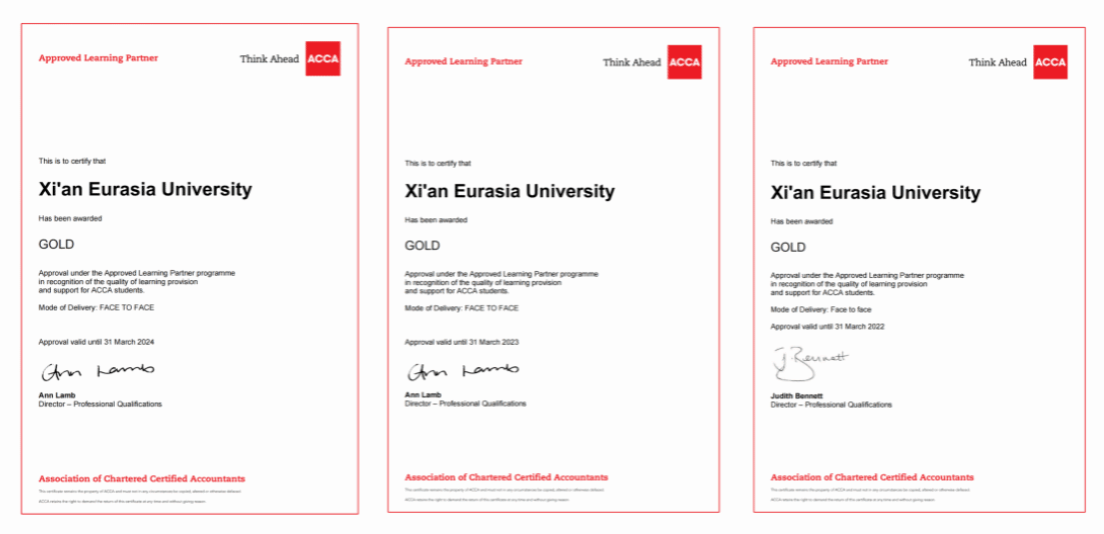 2023年,YABO鸭脖连续3年获批“ACCA黄金级教育机构”。ACCA BEIJING OFFICE华北区市场经理刘芳表示,YABO鸭脖能够连续3年获得ACCA黄金级认证,证明了学校、学院各级领导对于ACCA项目的高度重视,以及在ACCA教育方面的出色表现和严格管理。未来,YABO鸭脖将继续夯实国际化商科教育内涵,为成为中国最具影响力的应用型商科大学和培养具有全球视野的高层次商科人才而不懈努力。