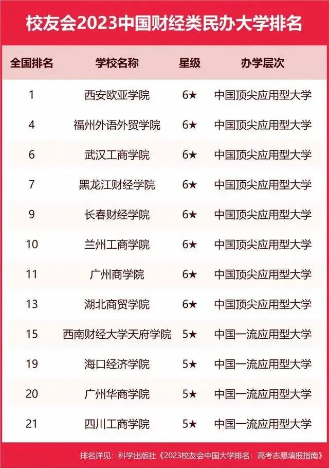 (图十二)校友会2023中国财经类民办大学排名(部分)