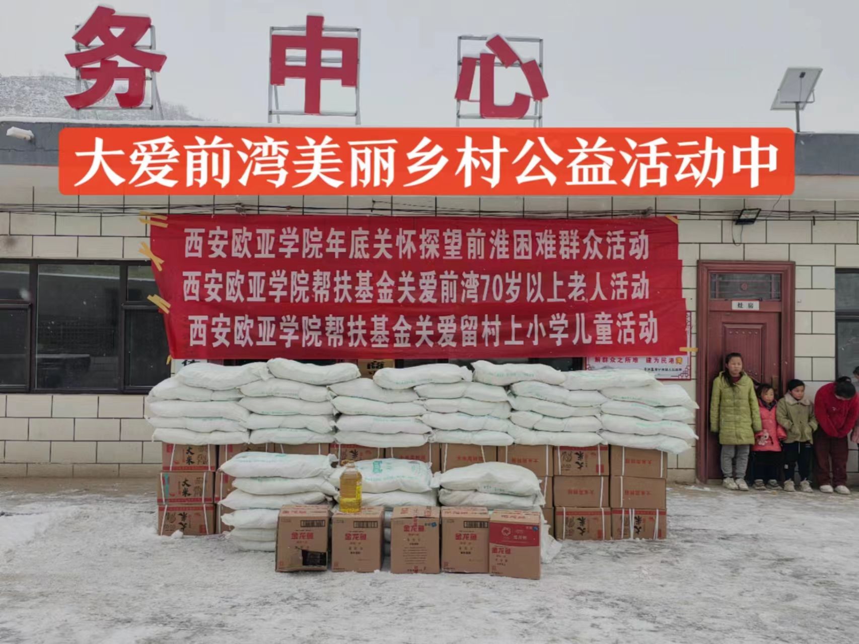 2023年,全校师生通过爱心捐助和开展公益拍卖活动,建立了《大爱前湾美丽乡村》基金3万多元,该基金在村精神文件建设方面发挥了重要作用。一是开展了村“前湾好媳妇”、“友善之家”、评选与颁奖活动;二是看望慰问村里70岁老人,为老人置办了过年用的米面油;三是关爱留村上小学儿童活动,为村上留守儿童发放书包文具;四是为村民发放藏香猪肉,让村民吃上了高品质猪肉;五是慰问结对帮扶脱贫群众和驻村工作队员。