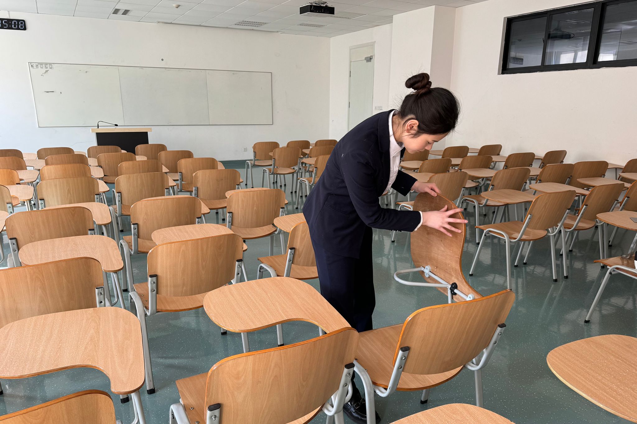 (图十)后勤人员开展教学楼教室设施检查