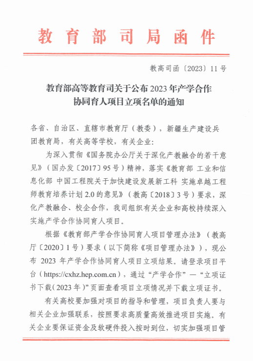 教育部产学合作协同育人项目旨在深化产教融合,推动高校人才培养改革,实现教育链、人才链与产业链、创新链的有机衔接。通过政府搭台、企业支持、高校对接、共建共享的方式,项目以产业和技术发展的最新需求为导向,促进高校与企业之间的紧密合作,共同培养支撑引领经济社会发展需要的高素质专门人才。